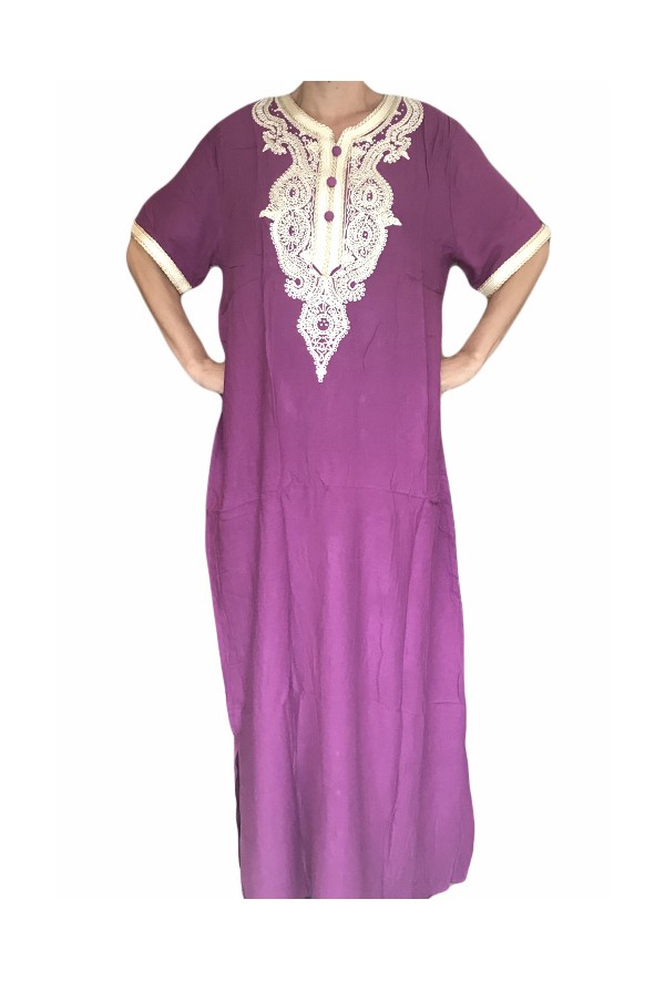 Kaftan traditionellen violett gestreiften Regenbogen , weißer Stickerei. Chic und trendy.