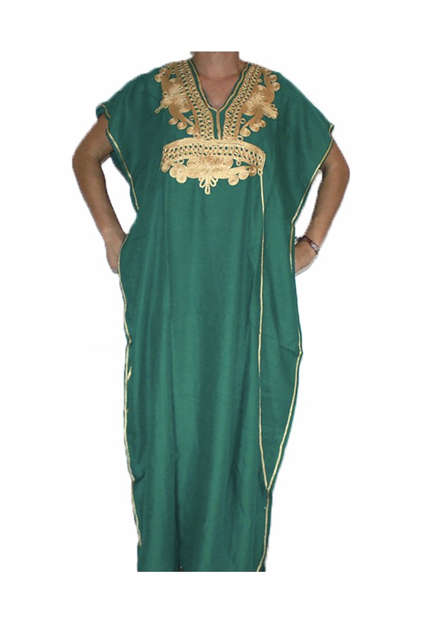 Djellaba traditional green fabric with fatma hand print.Chic and trendy.