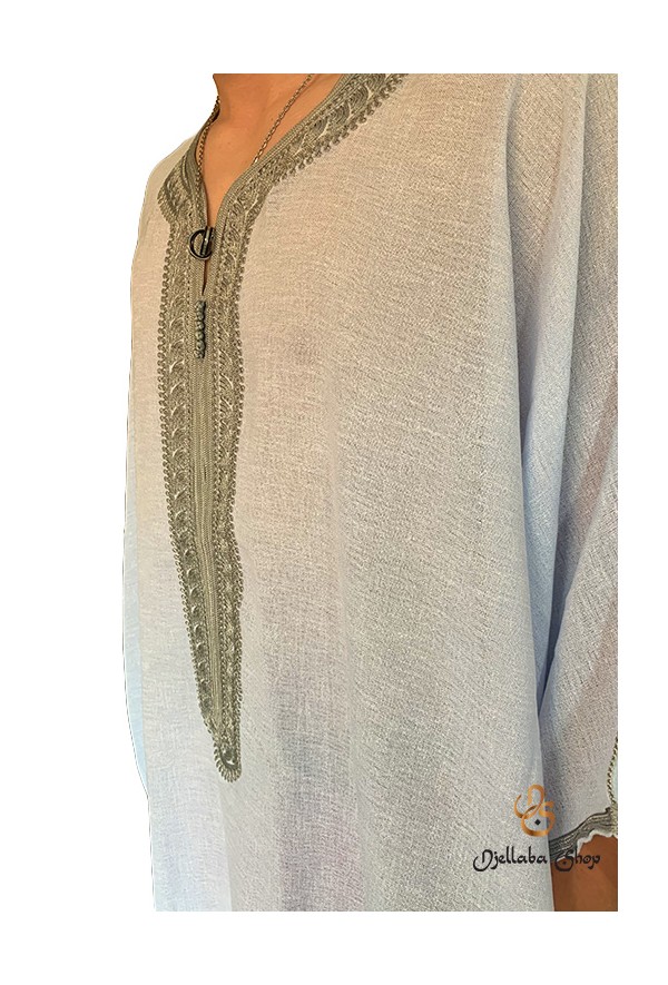 Djellaba traditional gray man with stripes, quality embroidery. Hand made, high-end fabric. Unique size.