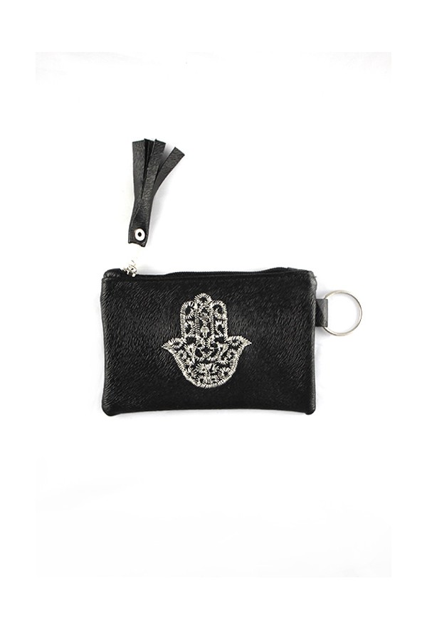 Pockets in black leather. Fatma hand logo, multiple use, wallet, jewelry case ...