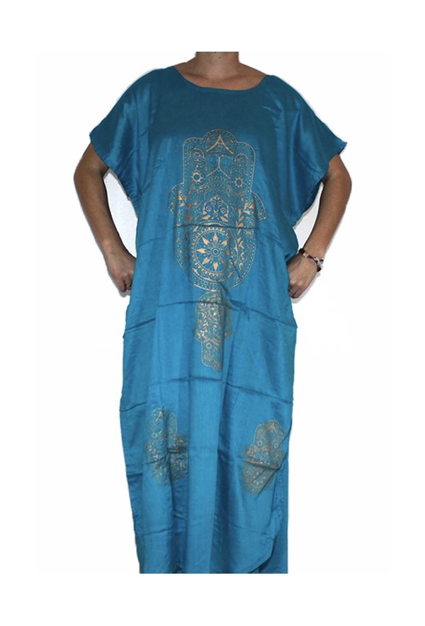 Djellaba traditional blue cloth with fatma hand print.Chic and trendy.