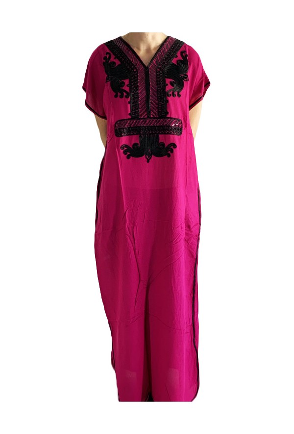Djellaba mujer rosa, bordados y lentejuelas negras.