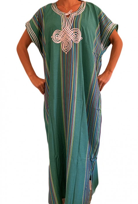 Chilaba tela verde tradicional con impresión de la mano de Fatma.Elegante y de moda.