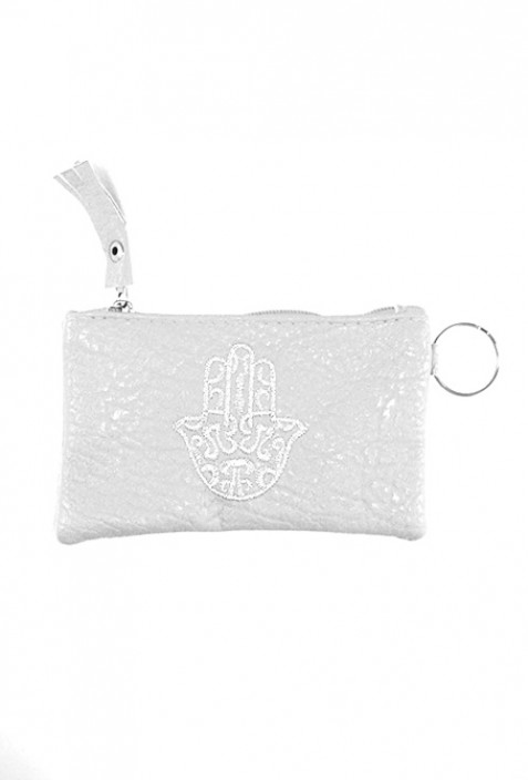 Bolsillos de imitación de cuero de color blanco. Insignia de la mano de Fatma, de uso múltiple, monederos, kit de la joyería ...