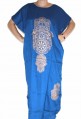 Chilaba azul de la tela tradicional con la mano impreso Fatma.
